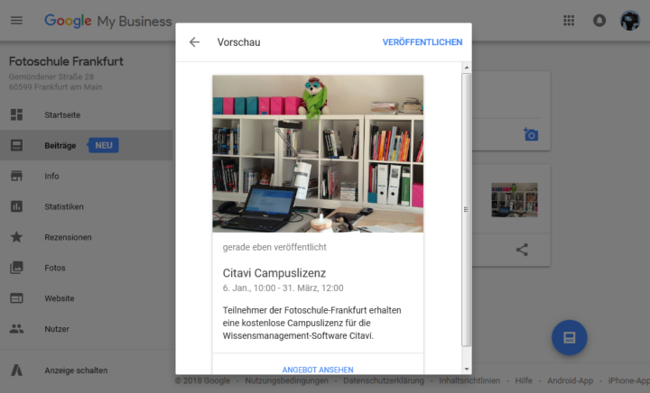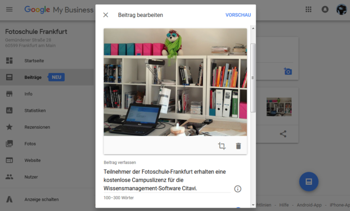 Beispiel: GMB Kurzlink für Fotoschule Frankfurt